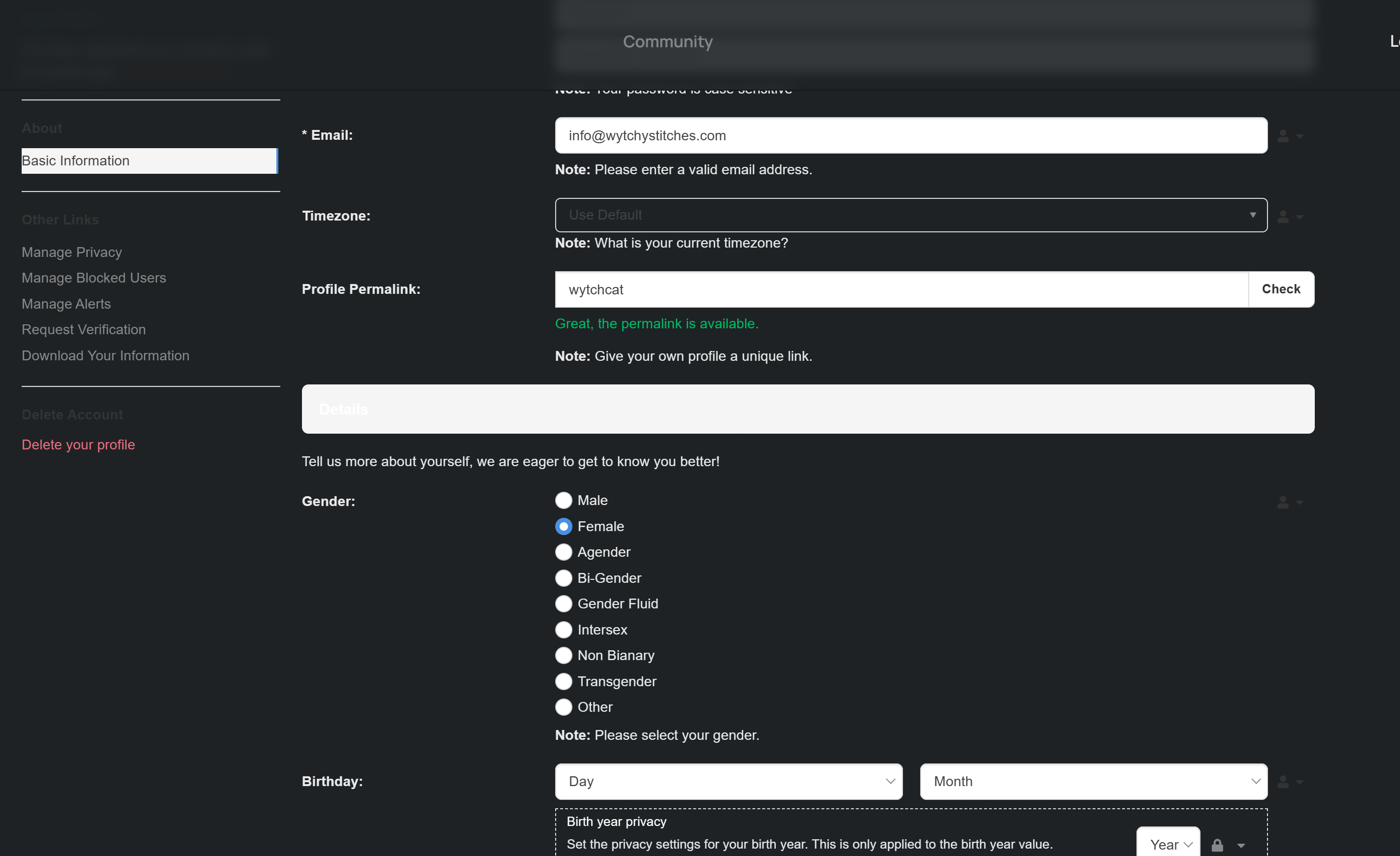 Computer-Clicking on your icon in the upper right hand corner will open a drop down menu. Account>Edit Profile will lead you to the screen you need.
